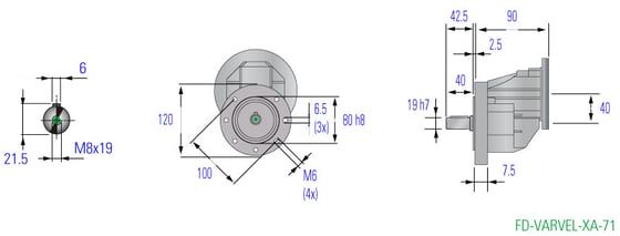 Gehäuse und Deckel aus Aluminium-Druckguss, Zahnräder aus gehärtetem Legierungsstahl. Die Zahnräder, ausgelegt und gefertigt nach ISO 6336 und DIN 3990, und die Lager sind für eine durchschnittliche Mindestlebensdauer von